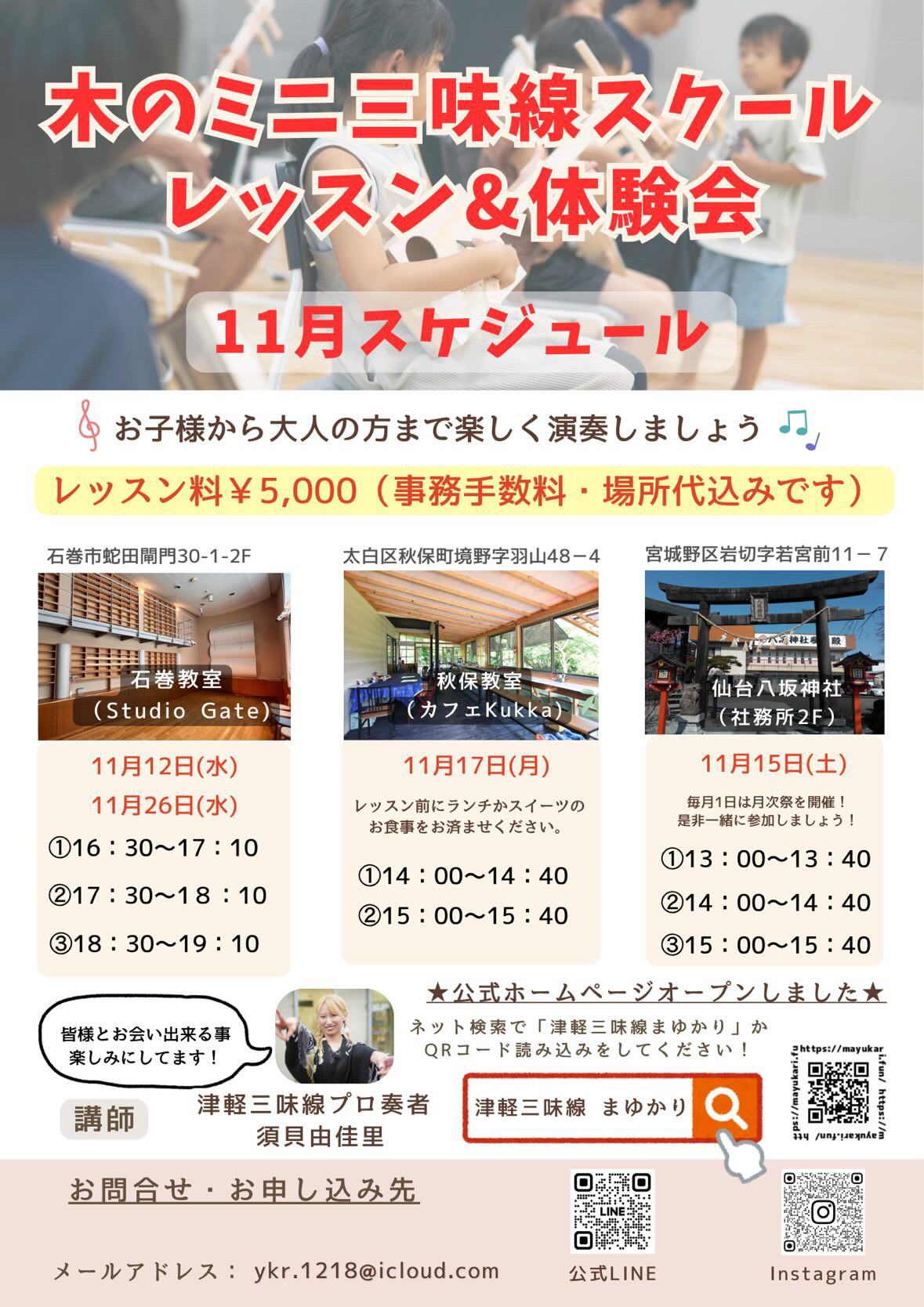 津軽三味線の姉妹ユニット「まゆかり」さんの木の三味線のスクールを開催します。 お子様から大人の方まで楽しく演奏しましょう。 初回は無料体験になります。2回目以降はレッスン料¥4,000になります。 日時:11月17日(月) 13:30〜受付 ① 14:00〜14:40 ② 15:00〜15:40 会場:Kukka(屋内テラス席) 定員:6名様 ※飲食代は別途必要になります。ご参加の方は、ランチまたはスイーツセットをご注文下さい。